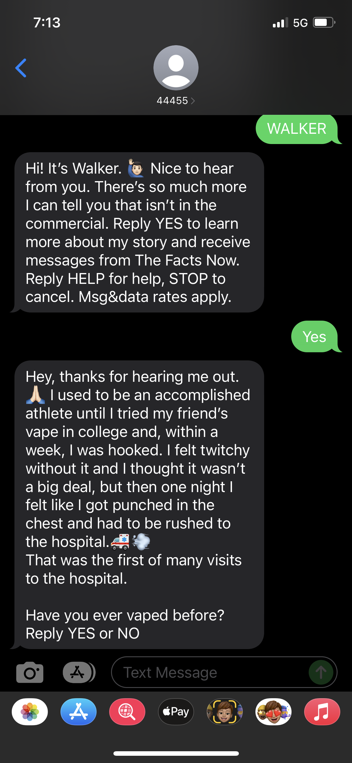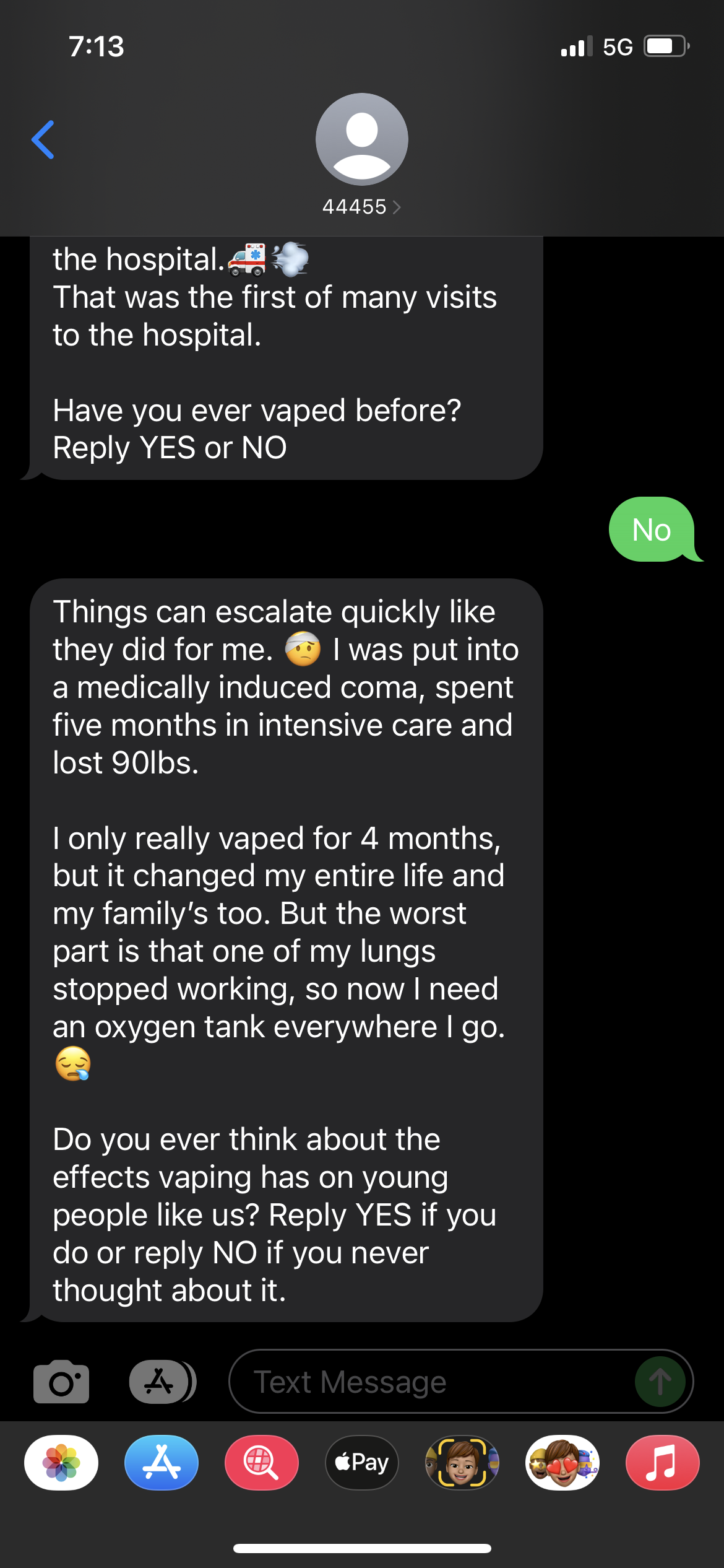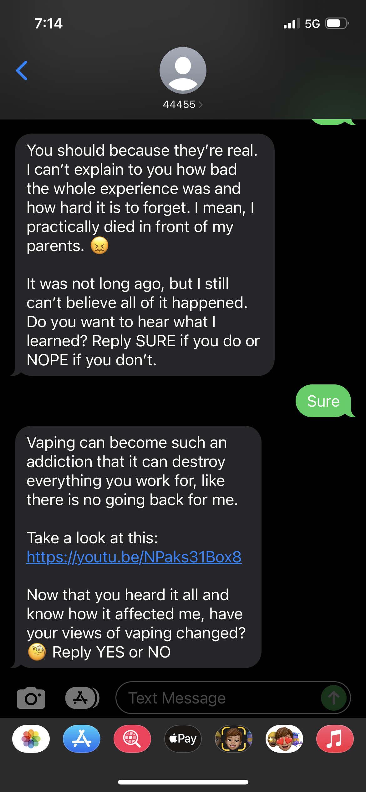 Tobacco-Free Florida, the government agency against tobacco in Florida, wanted to create a vaping awareness campaign addressed mainly to young vapers -but only using testimonials- So, we created TEXTIMONIALS: An interactive campaign, where viewers could personally text the young vaper showcased in our commercial, to get their full story on how vaping almost ruin their lives.